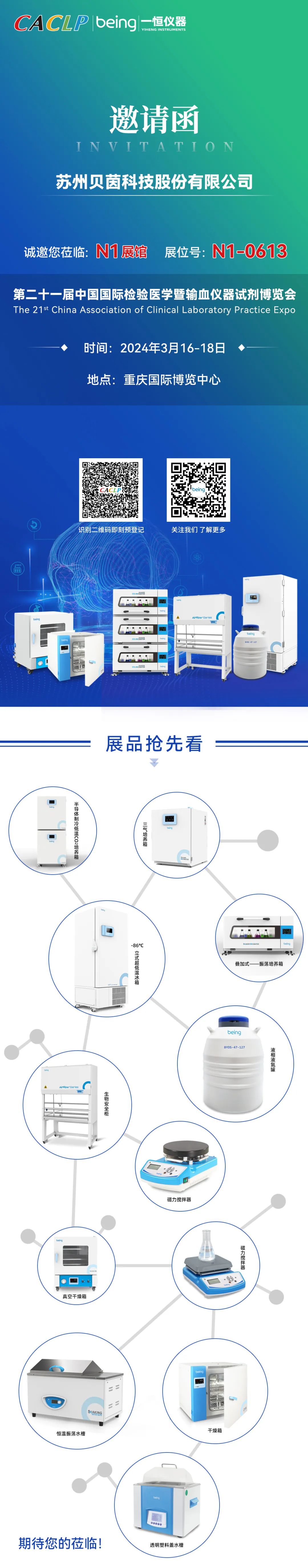 2024-03-13 | 文章來源: | 點擊率: 第二十一屆中國國際檢驗醫(yī)學(xué)暨輸血儀器試劑博覽會(CACLP),第四屆中國國際IVD上游原材料制造暨流通供應(yīng)鏈博覽會(CISCE)將于2024年3月16日-18日在重慶國際博覽中心舉行。貝茵科技將攜多款產(chǎn)品亮相N1-0613展位,誠邀您蒞臨現(xiàn)場,參觀指導(dǎo),交流合作。