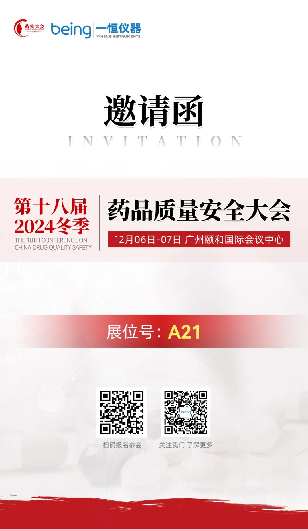 2024-12-04 | 文章來源: | 點擊率: 藥品質(zhì)量安全大會是制藥行業(yè)質(zhì)量安全領域?qū)I(yè)性會議之一,對我國制藥行業(yè)技術發(fā)展與應用起到了重要的推動作用。由中國社科院食品藥品產(chǎn)業(yè)發(fā)展與監(jiān)管研究中心指導、北京中培科檢信息技術中心主辦的第十八屆(2024冬季)藥品質(zhì)量安全大會將于2024年12月6-7日在廣州舉辦。我們受邀參加此次會議,展位:A21,期待您蒞臨現(xiàn)場并交流合作。